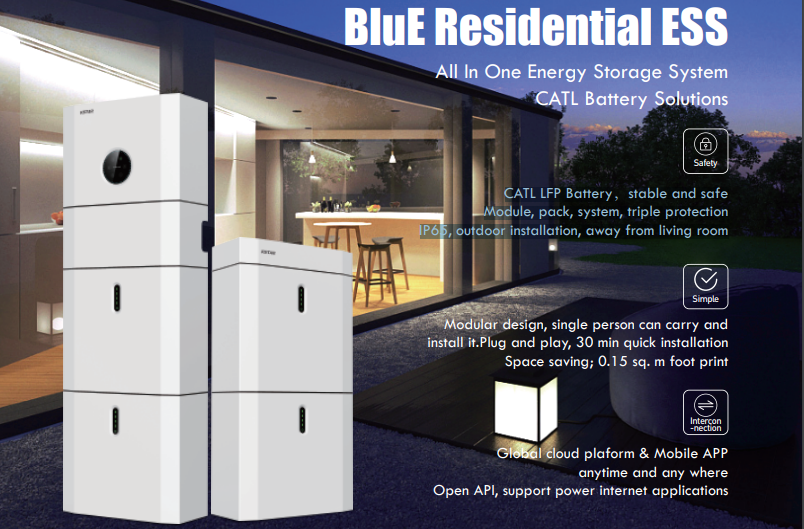 La solution de stockage d'énergie BluE-S 5000D, conçue avec la solution de batterie CATL et la solution d'onduleur KSTAR, est le choix idéal pour les systèmes hybrides. Cette solution de stockage monophasée tout-en-un est sûre, fiable et offre un rendement élevé. Ce système de stockage d'énergie est produit par la coentreprise CATL-KSTAR.